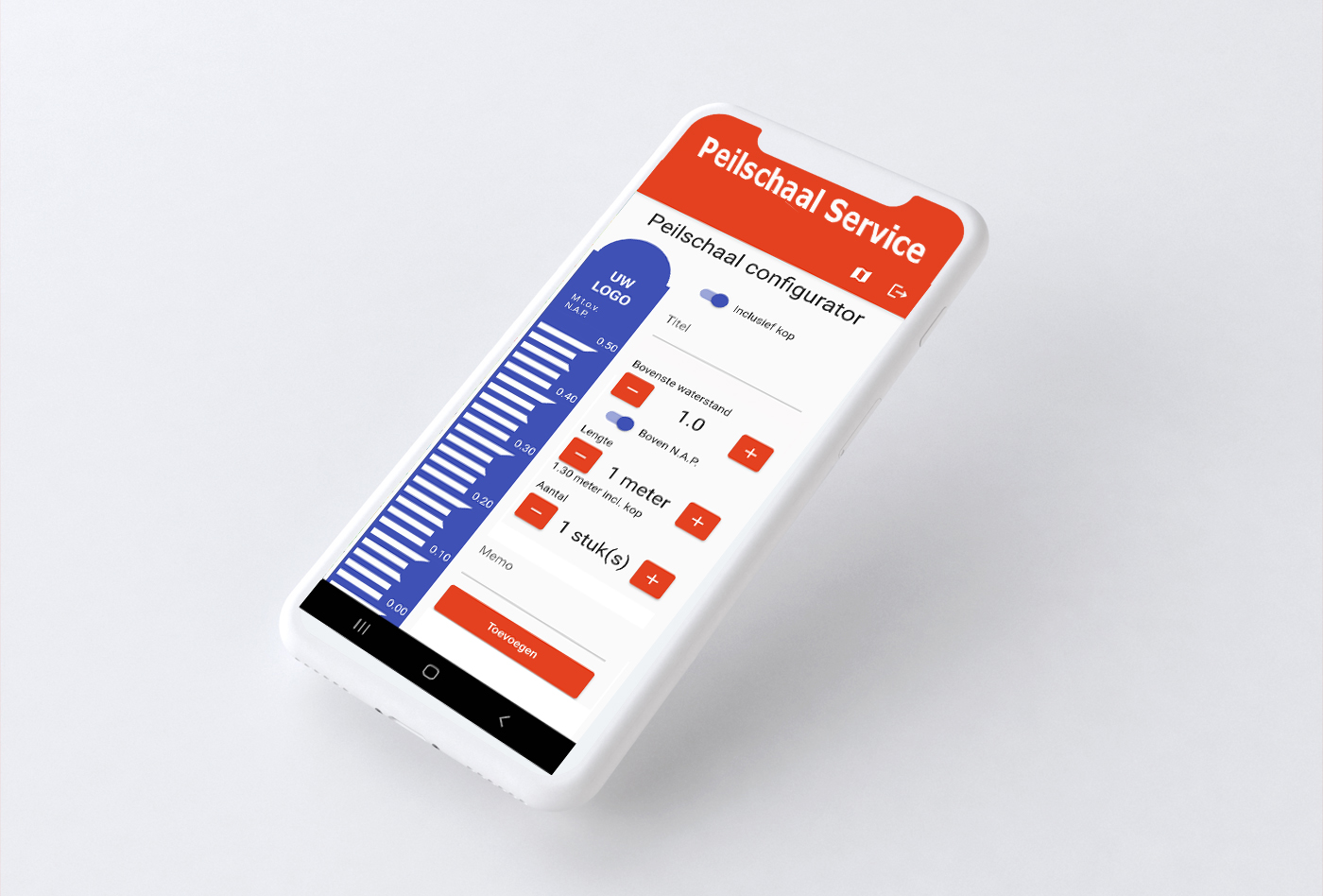 Een alles in 1 product waarmee u de actuele waterstanden direct vanuit uw eigen beveiligde app kunt raadplegen. Daarnaast kunt u middels de app eenvoudig peilschalen en/of houders bestellen en ziet u direct wat het kosten zijn.